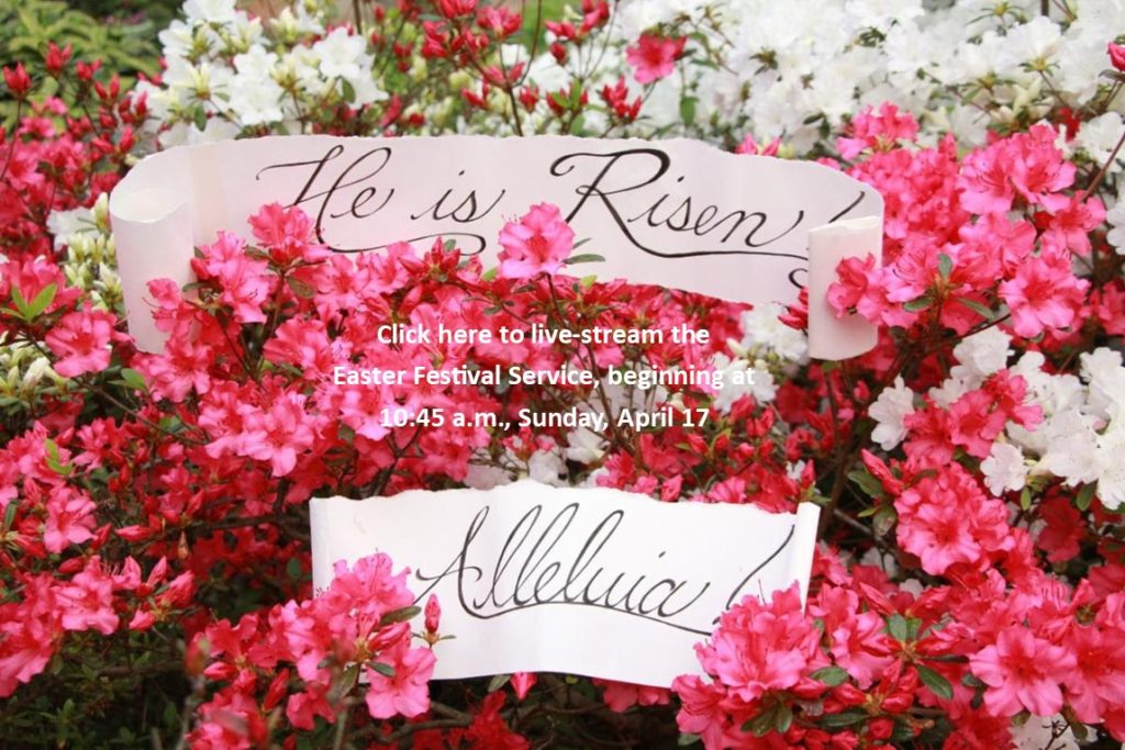 Our Easter festival worship service on Sunday, April 5, will be at 11:00 a.m. The Christ candle will return to the Sanctuary to signify the resurrection of Jesus Christ as the light of the world. All are invited, prior to worship, to our Easter Sunday Potluck Breakfast at 9:30 a.m. in the Fellowship Hall.